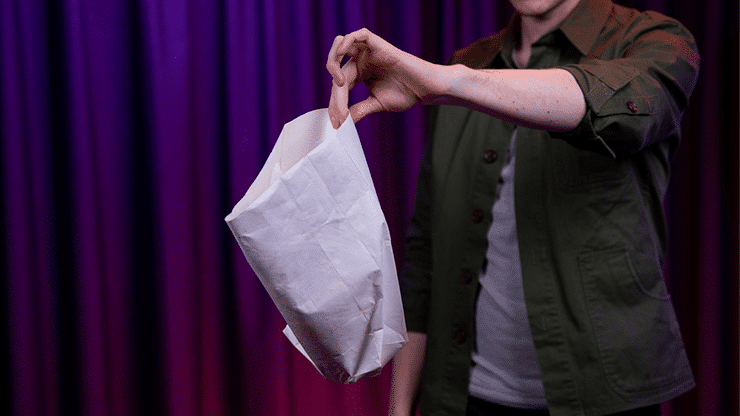 Se saca una bolsa doblada del bolsillo y se desdobla frente al público. Les muestras claramente que está vacío e incluso puedes dejarles meter las manos dentro. Sin duda es una bolsa vacía. Hasta ahora, esto es lo mismo que la mayoría de los efectos comercializados.