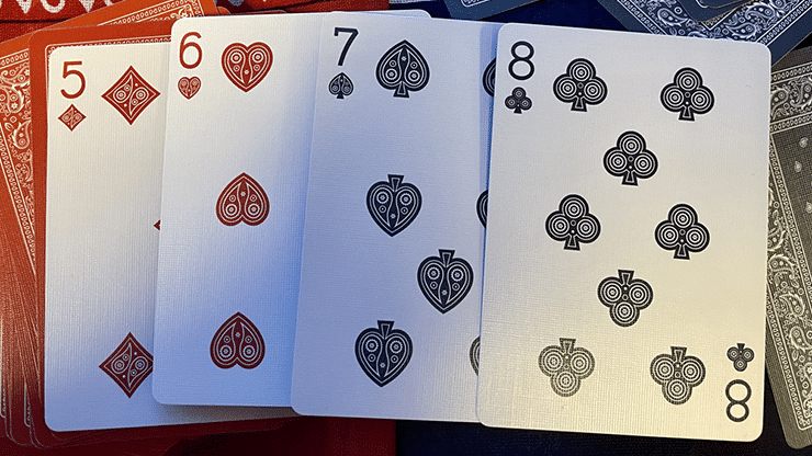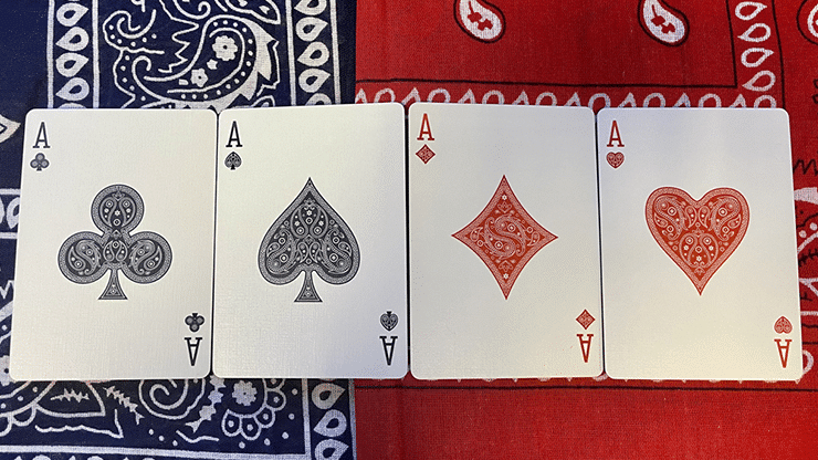 Libera la fusión del juego tradicional y el estilo clásico con los naipes Bicycle Bandana Blue . Como baraja PCD Originals, su impecable artesanía rinde homenaje al icónico diseño de bandana, fusionando la esencia de la moda tradicional con el encanto atemporal del juego de cartas. Con arte diseñado por el talentoso y colaborador de toda la vida, Juniardi Satyanagara, cada detalle, desde las cartas de la corte cubiertas con pañuelos hasta las pepitas especialmente seleccionadas, hace eco de los patrones familiares y exuda herencia. El fascinante patrón de cachemira azul que adorna el reverso de cada carta completa la estética, haciendo de cada juego una experiencia cautivadora.