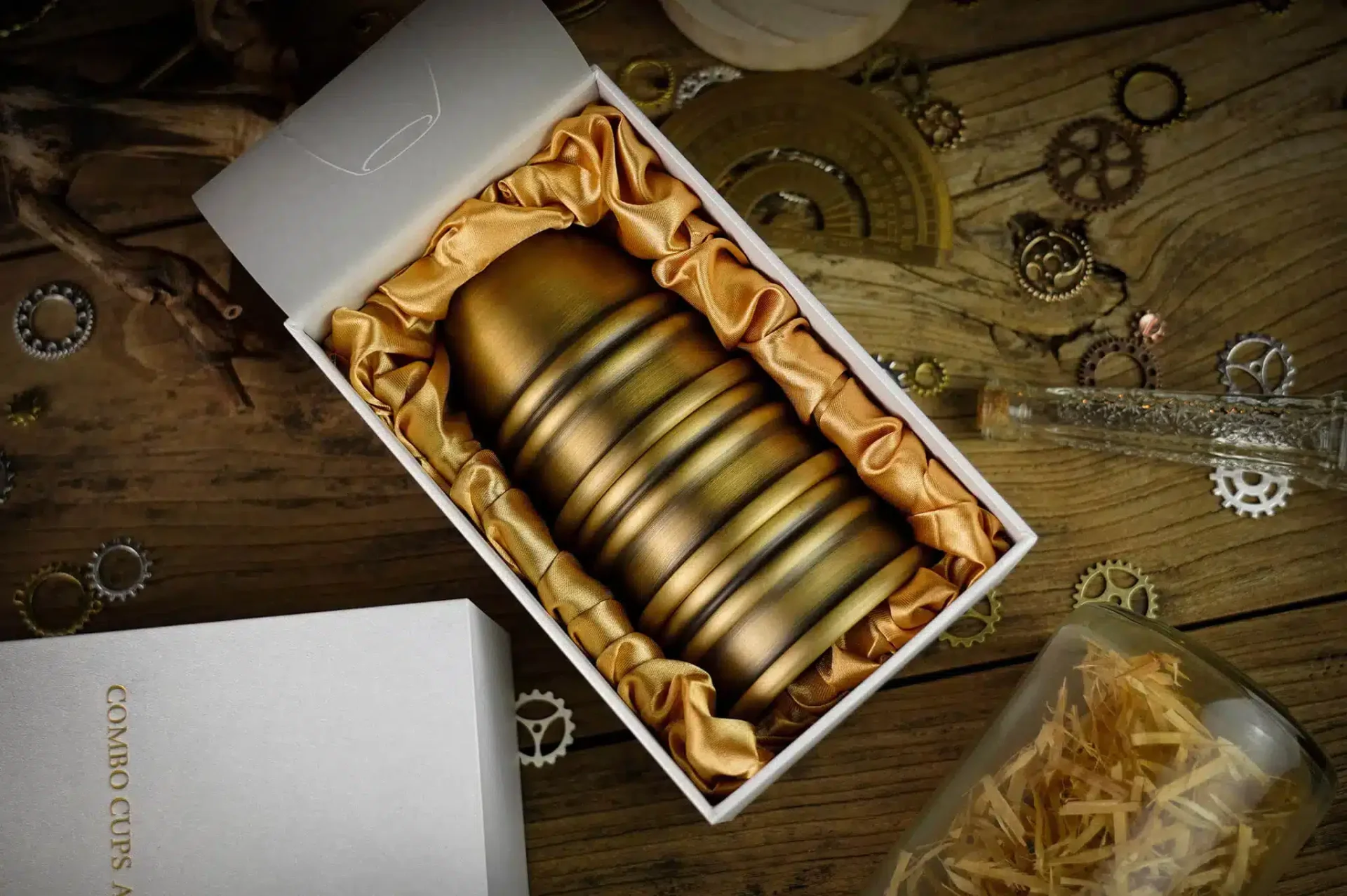 Perfecto para coleccionistas : con su diseño elegante y su presentación en una caja de lujo, el Conjunto Artístico de Cubiletes TCC es ideal para magos que deseen añadir una pieza única a su colección.