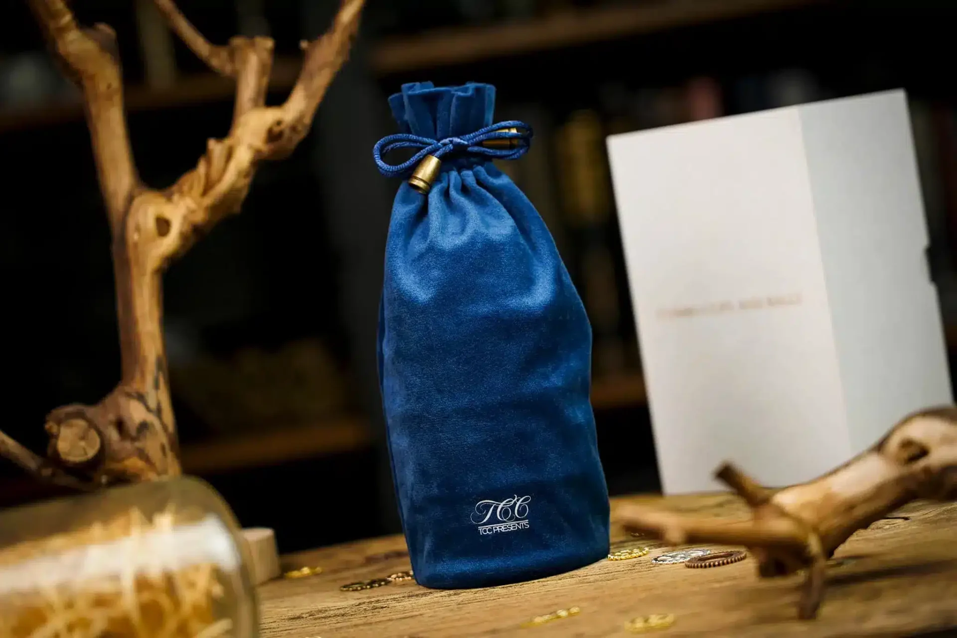 Bolsa de franela : el set viene con una bolsa de franela azul , ideal para llevar el set de cubiletes con estilo y seguridad.