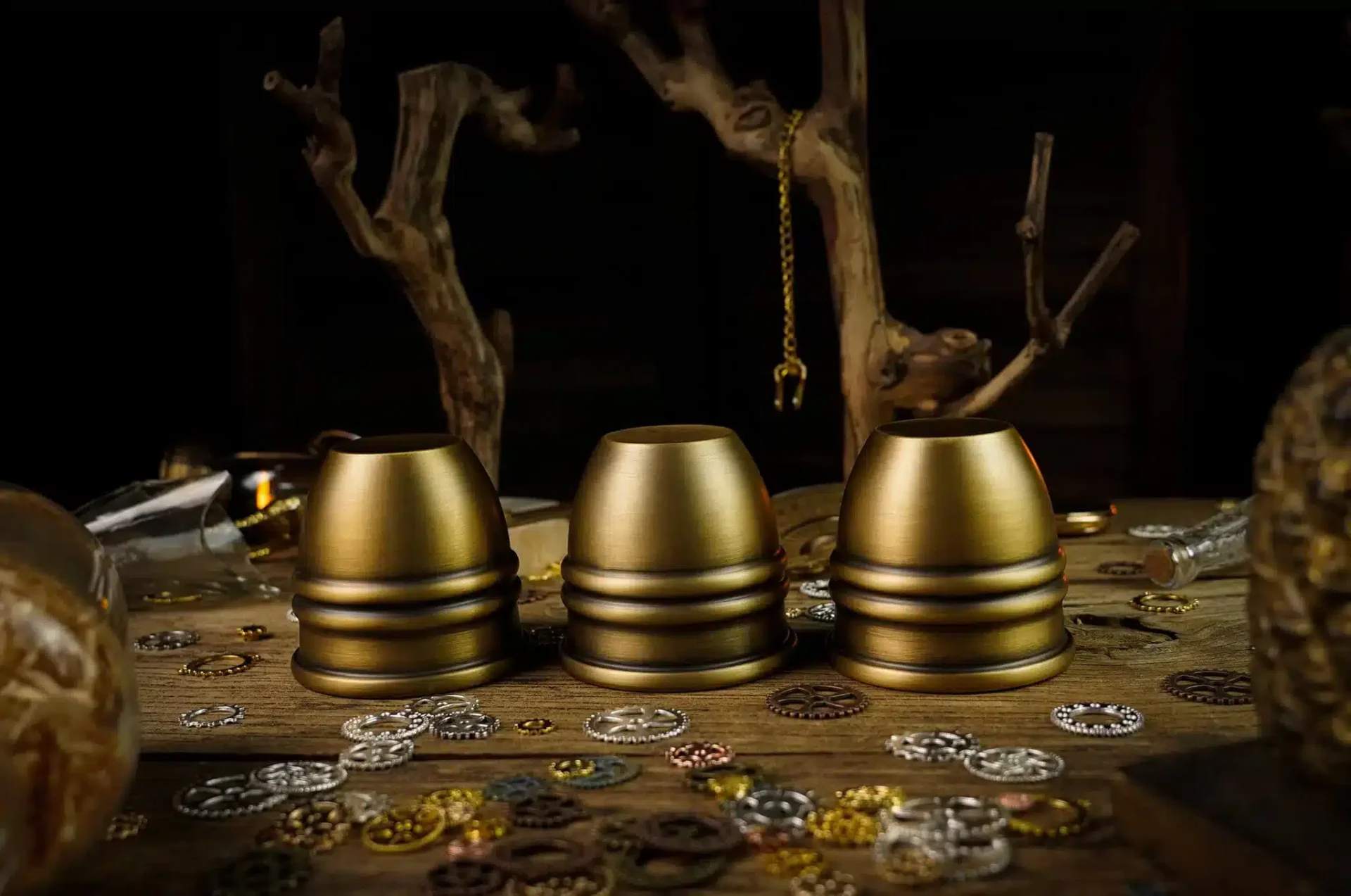 Tecnología de mecanizado avanzada : garantiza que los tres cubiletes, incluido el Chop Cup , sean completamente idénticos en apariencia y tacto.