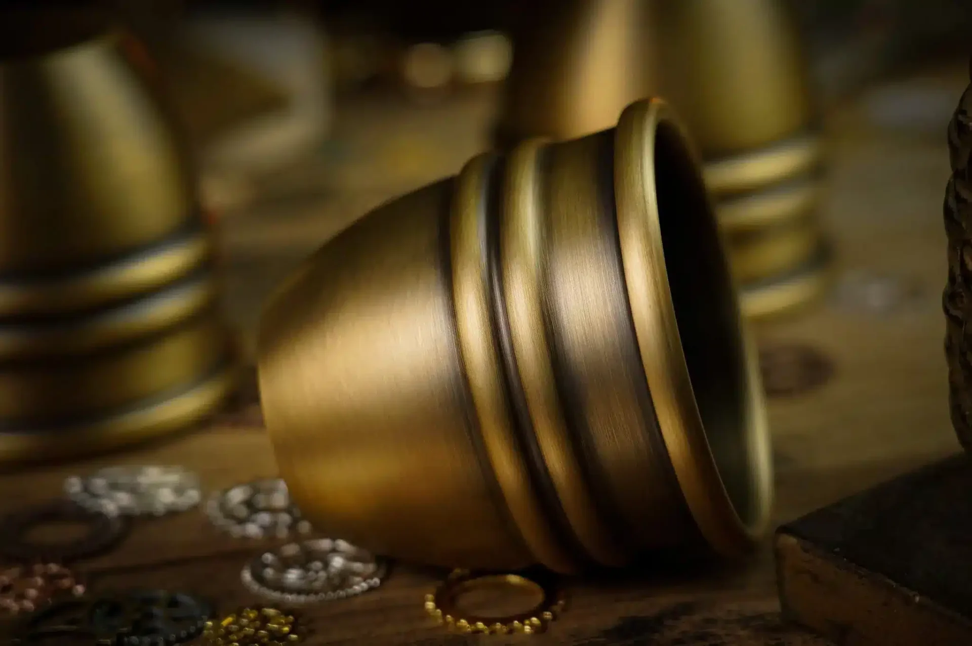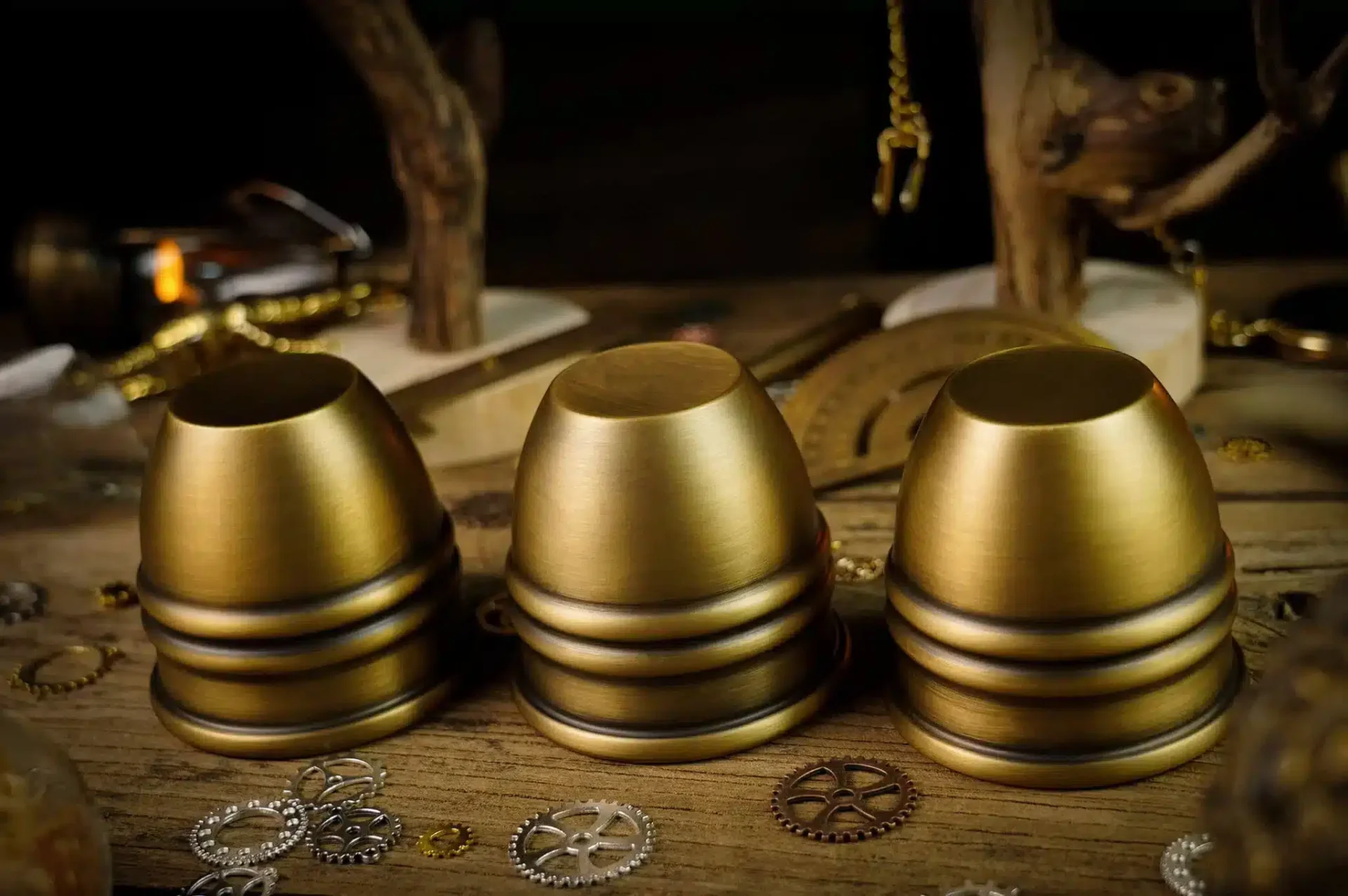 El Conjunto Artístico de Cubiletes TCC es la obra maestra definitiva para magos que buscan un conjunto de calidad incomparable para la clásica rutina de Cups and Balls . Este conjunto, elaborado en latón de calidad superior , ha sido perfeccionado con la última tecnología de mecanizado para que los tres cubiletes sean completamente idénticos , incluyendo el Chop Cup trucado. Este conjunto combina elegancia, durabilidad y precisión para lograr un rendimiento perfecto en cada actuación.
