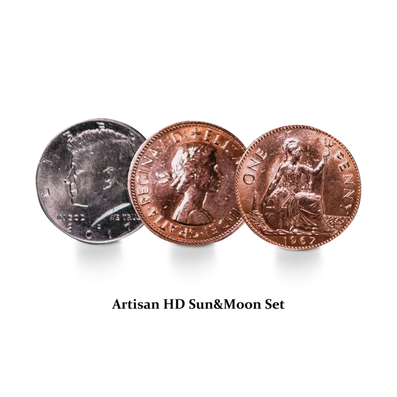 En la serie Artisan Coin , el medio dólar ha sido rediseñado específicamente para encajar perfectamente en la carcasa de un centavo, eliminando las limitaciones de la versión original. Esto no solo reduce la dificultad de la ejecución, sino que también lo hace accesible para magos principiantes que buscan perfeccionar su técnica con monedas trucadas.