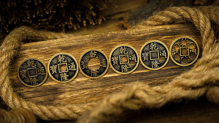 Crazy Chinese Coins es una serie de efectos de agujeros en movimiento que utilizan los agujeros de las antiguas monedas chinas. El mago muestra cuatro monedas antiguas y los agujeros de las monedas se mueven desde el centro de las monedas hasta el borde, saltan de una moneda a otra o incluso duplican los agujeros en una moneda entera.