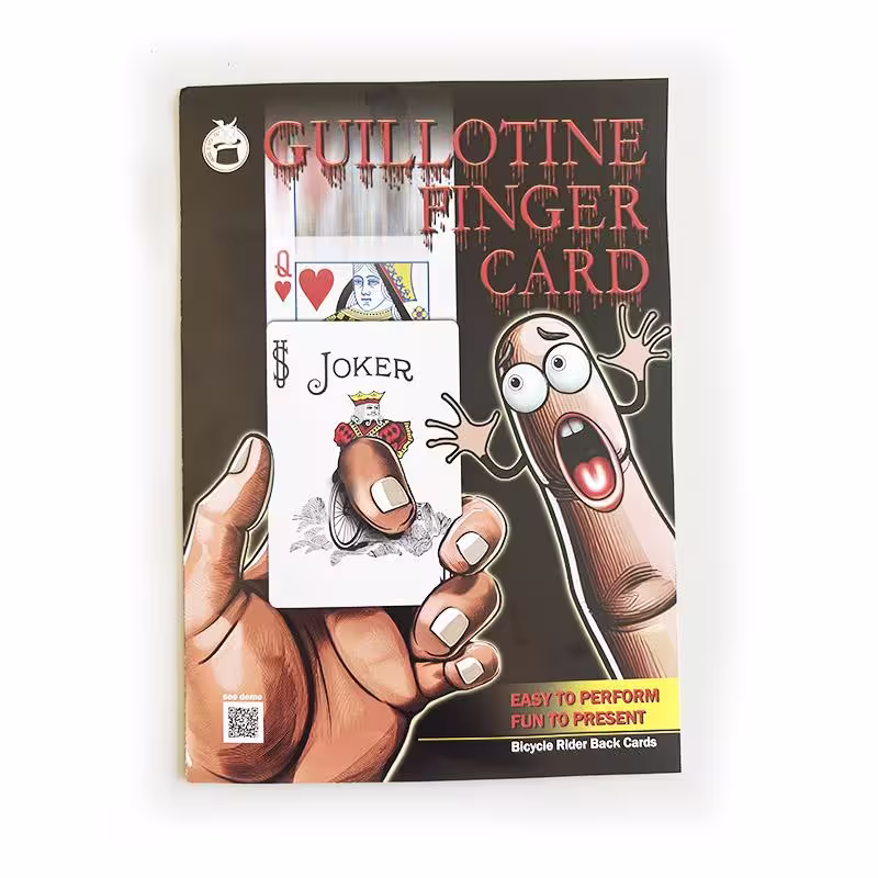 Guillotina de dedo – Bicycle es un efecto visual, impactante y muy fácil de llevar siempre contigo. Usas tres cartas Bicycle con agujeros, un dedo de espectador… ¡y una reina que atraviesa lo imposible!