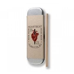 Colocas un lápiz al alcance de la mano, creando una conexión entre tú y el espectador. Tan pronto como tocas tu corazón, pueden sentir tu pulso a través del lápiz.