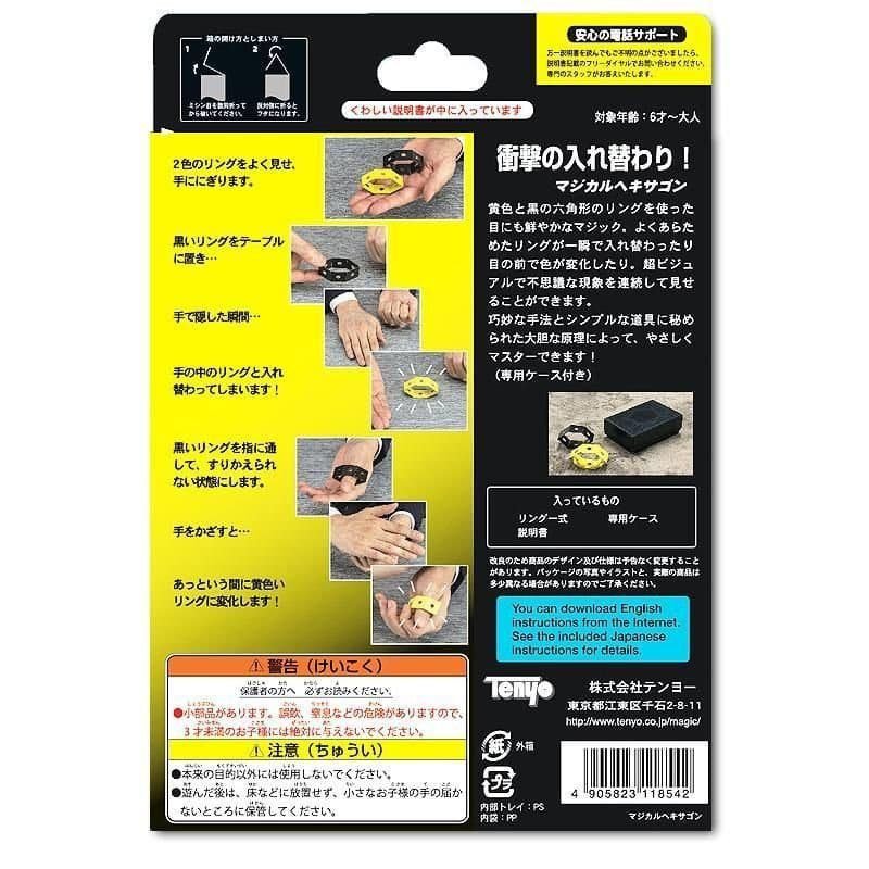 Este ágil truco utiliza dos anillos hexagonales, uno amarillo y otro negro. Cada anillo está perforado con una serie de agujeros.