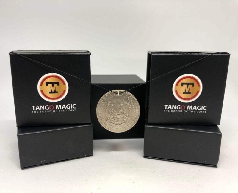 La Hooked Coin Medio Dollar Kennedy de Tango Magic está diseñada para realizar efectos impresionantes, como enganchar la moneda en el hombro del espectador o hacerla levitar. Su ingenioso trucaje permite colocarla fácilmente en diversos lugares, abriendo un mundo de posibilidades mágicas.