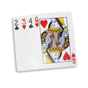 Ahora, pide al espectador que abra el sobre y lea tu predicción en voz alta. Dice “tu carta NO será el siete de picas». El espectador sonríe con esta predicción que parece una broma tonta. Pero entonces, solicita al espectador que te devuelva tu baraja de predicción, extiende las cartas y devela al público tres sorpresas devastadoras