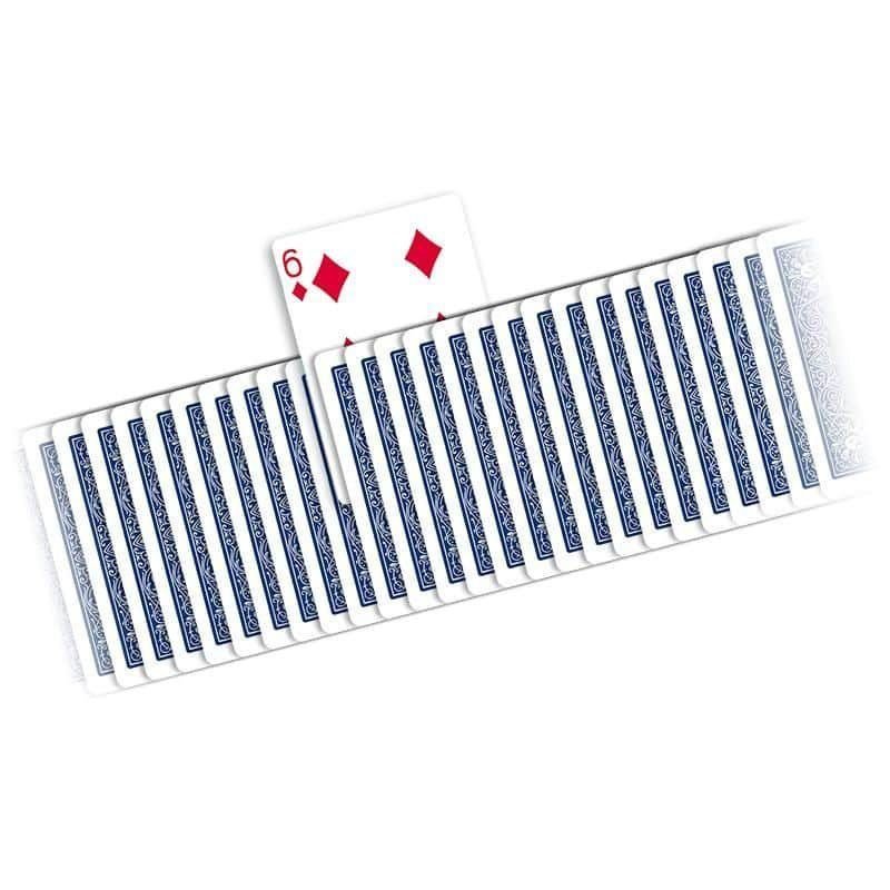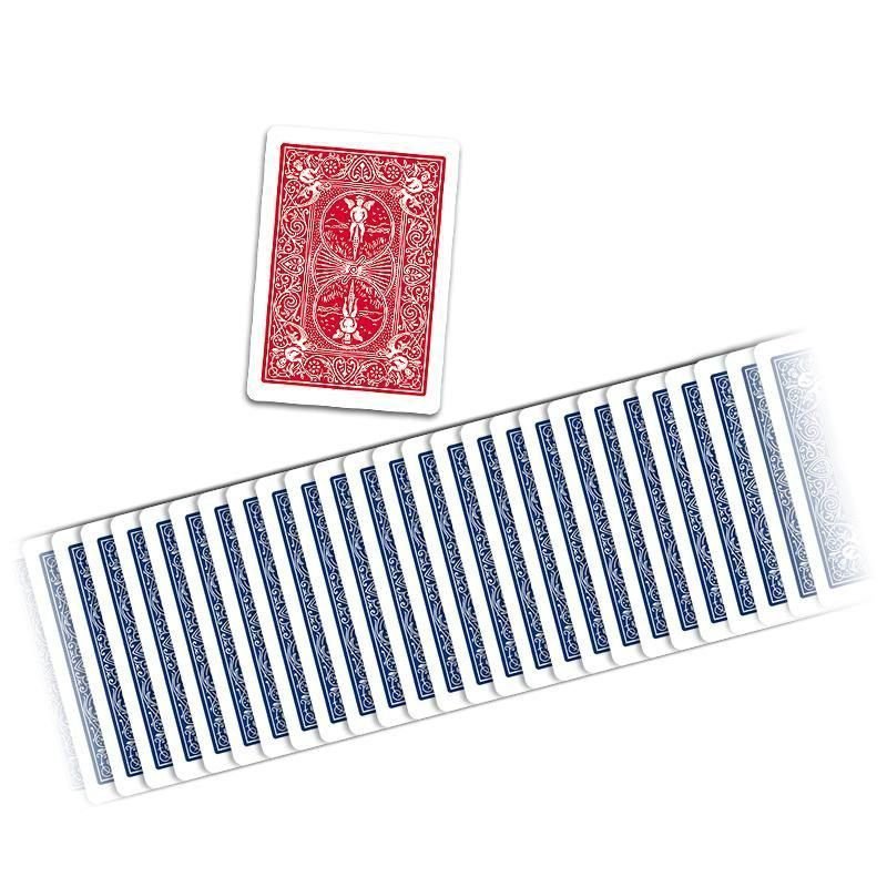 Entrega a un espectador una baraja con dorsos azules diciendo que contiene una predicción. Estás tan seguro de ella que, además, le entregas un sobre con tu predicción escrita “negro sobre blanco” en su interior.