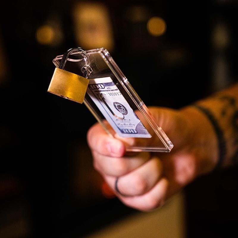 En La Llave de la Suerte Versión Magia de Cerca , el mago introduce un billete de alta denominación (o una tarjeta de crédito) en un contenedor de plexiglás transparente, lo asegura con un candado y mezcla las llaves en un vaso. Uno a uno, los espectadores eligen una llave y prueban abrir el candado, pero sin éxito. Al final, el mago (o un espectador) utiliza la última llave restante y, como por arte de magia, esa es la llave que abre el candado. Este truco es perfecto para crear una atmósfera de emoción y suspenso mientras los espectadores quedan intrigados por el resultado final.