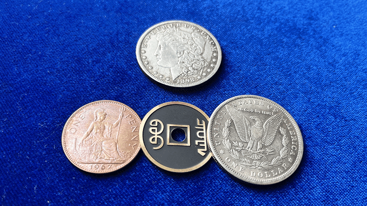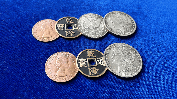 Tienes cuatro monedas diferentes en tu mano, son dos monedas Morgan de plata, una moneda de cobre y una moneda antigua. Cierras la palma y luego la abres de nuevo, «Solo queda una moneda Morgan de plata en tu mano». ¡Las otras tres monedas simplemente desaparecieron como verdadera magia!