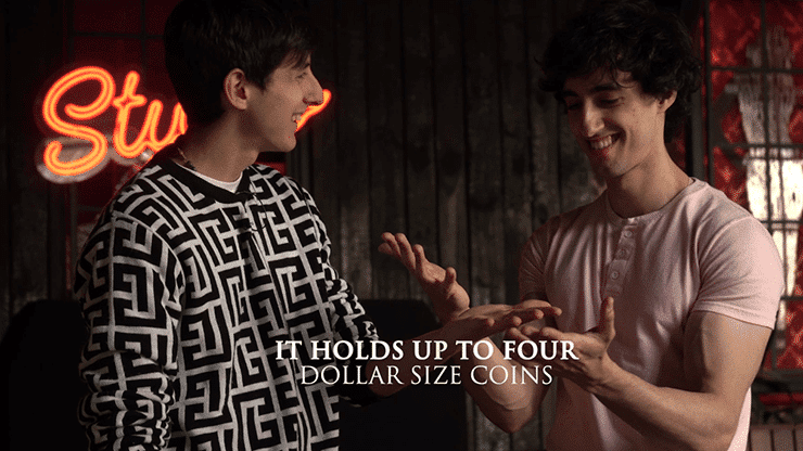 ·Viaje de monedas: El mago mete ocho monedas en su puño cerrado. El espectador agarra la parte superior e inferior de su puño. Al instante y sin ningún movimiento brusco, las monedas desaparecen y reaparecen en el interior del monedero.