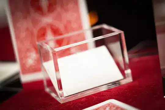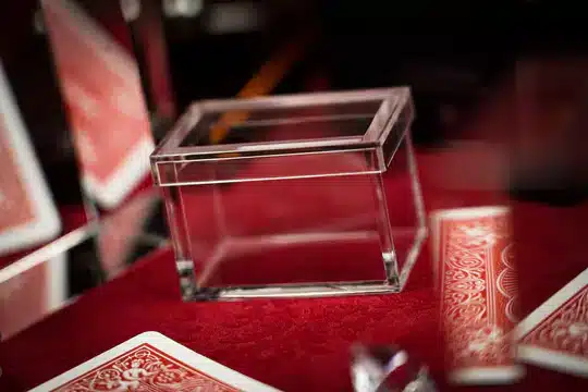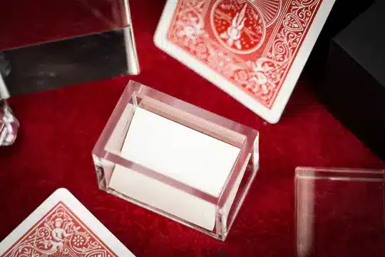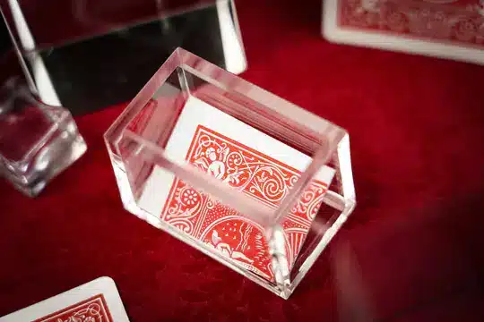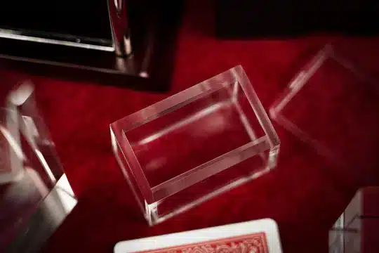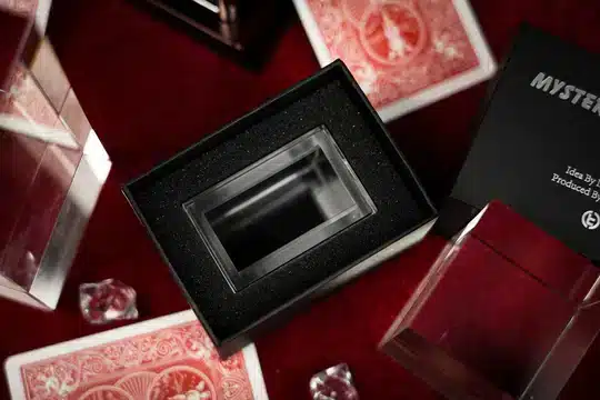 La versión 2.0 de Mystery Solved es más pequeña y está diseñada para naipes plegados en cuartos, lo que la hace ideal para actuaciones en primer plano. La caja está meticulosamente elaborada con atención al detalle, hecha de acrílico transparente de alta calidad.