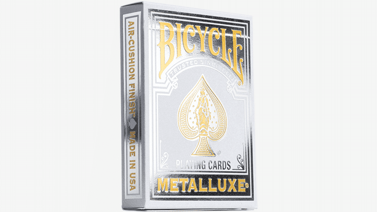 Los naipes Bicycle Metalluxe cuentan con un acabado de lámina de metal plata, lo que agrega un toque de lujo a la noche de juego.