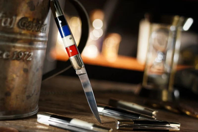 Cuchillo con un lado negro y lados negro-azul-blanco-rojo