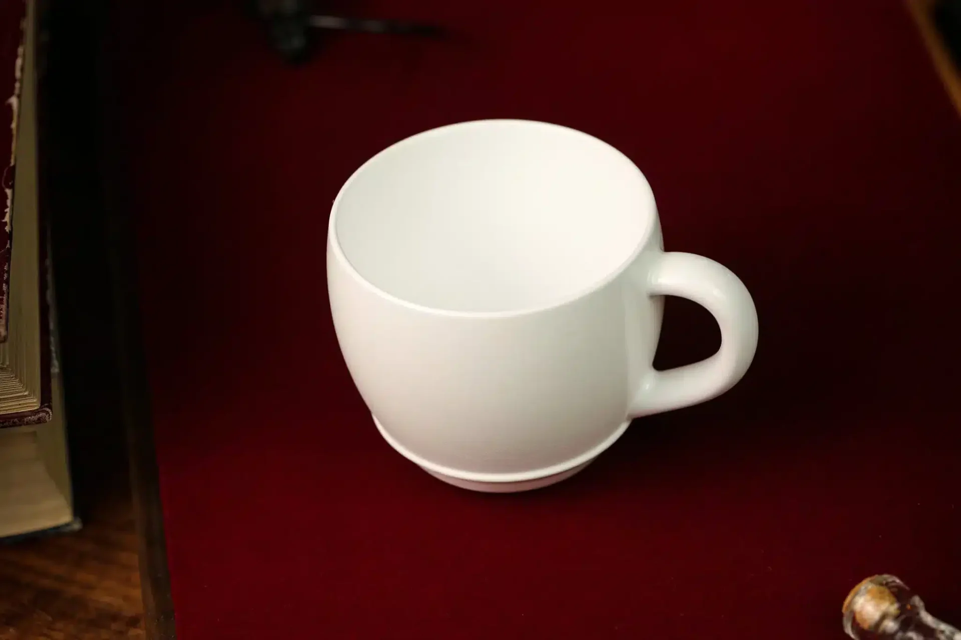 La estructura interna única de la copa dificulta su producción en masa. Por ello, utilizamos la impresión 3D fotocurado para crear una sola pieza. Luego, la superficie se pinta a mano y se le da un acabado para garantizar que el producto final parezca una taza normal, incluso de cerca. Los componentes secretos están inteligentemente ocultos a la vista del público, lo que permite mostrar tanto el interior como el fondo de la taza de forma limpia.